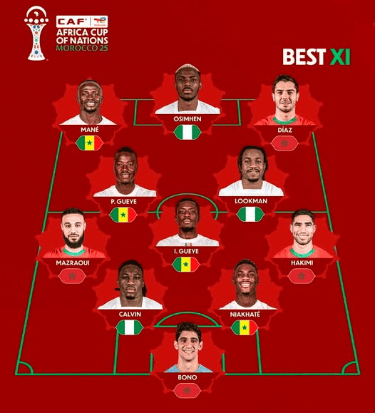 Afrika Millətlər Kuboku 2025 Mərakeşdə başa çatıb və turnirin rəsmi simvolik komandası açıqlanıb. CAF Texniki Tədqiqat Qrupunun qiymətləndirməsinə əsasən, qalib Seneqal və finalçılər Mərakeş dominantlıq edib. Heyət turnirin ən parlaq performanslarını əks etdirir.