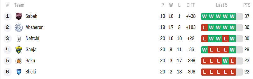 Turnir cədvəlinə nəzər saldıqda, “Sabah” 37 xalla birinci pillədə qərarlaşıb. Onların ən yaxın izləyicisi olan “Abşeron Lions” isə cəmi bir xal geridə – 36 xalla ikinci yerdədir. Bu səbəbdən qarşıdakı oyun faktiki olaraq liderlik uğrunda birbaşa duel kimi qiymətləndirilir.