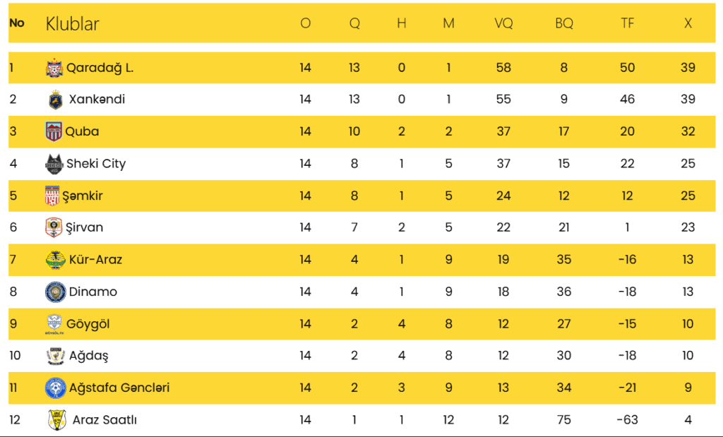 Ötən gün Xankəndi Şəki Siti-ni 2:1, Qaradağ Lökbatan Araz Saatlı-ya 13:1, Quba Ağdaş-ı 6:1 yenib. Cədvəldə Şahdağ Qusar lider, Şirvan orta qrupda güclü dayanır.