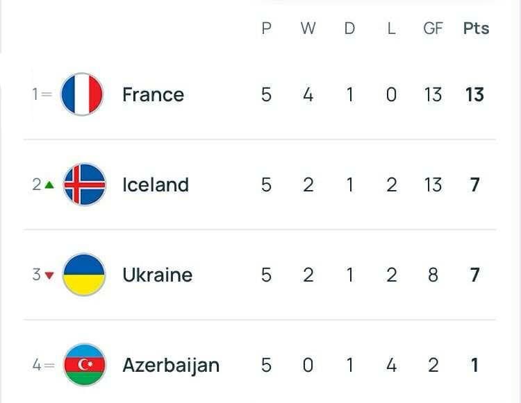 Qrup lideri Fransa artıq final mərhələsinə vəsiqə əldə edib. Millilər digər oyunlarına hazırlaşır və qarşıdakı turlarda mübarizəni davam etdirəcəklər.