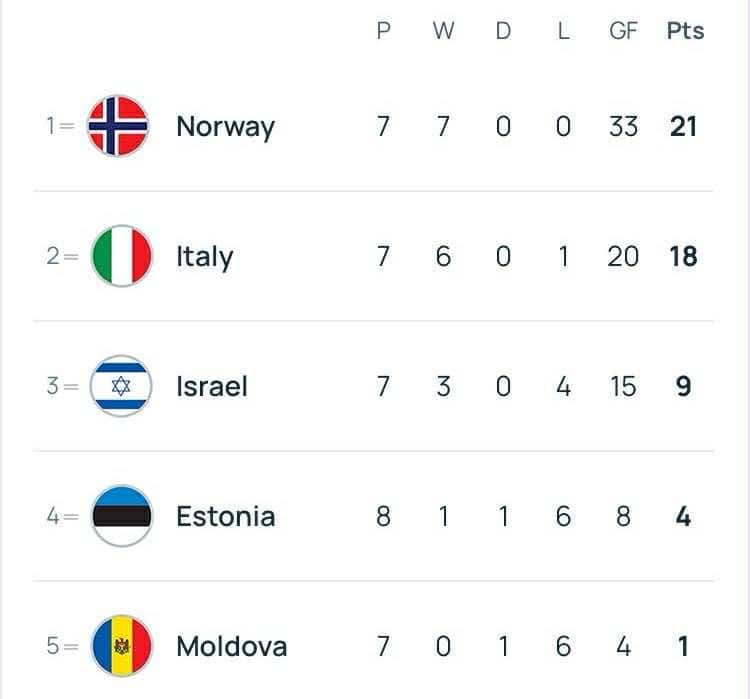 - Norveç – Estoniya: 4:1 (Sorlot 50, 52; Haaland 56, 62 – Saarma 64)