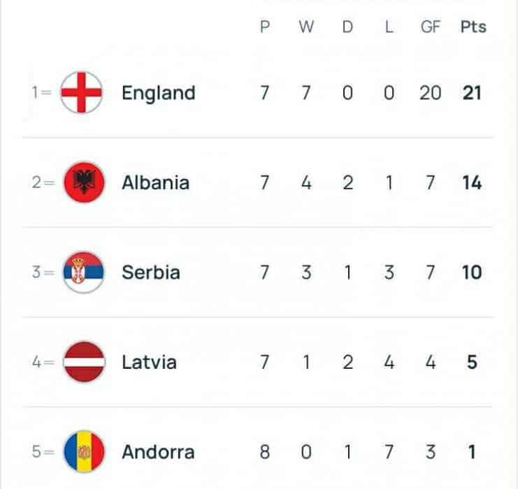- İngiltərə – Serbiya: 2:0 (Saka 28; Eze 90)