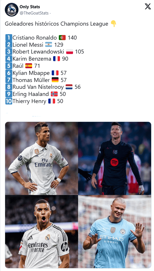 Norveçli hücumçu bu görüşdə daha bir dəfə fərqlənərək Çempionlar Liqasında 50-ci qolunu vurdu. Bu göstərici ilə Haaland əfsanəvi fransalı hücumçu Tyerri Anrini yaxaladı və turnirin tarixi bombardirlər siyahısında 9-cu pillədə qərarlaşıb.