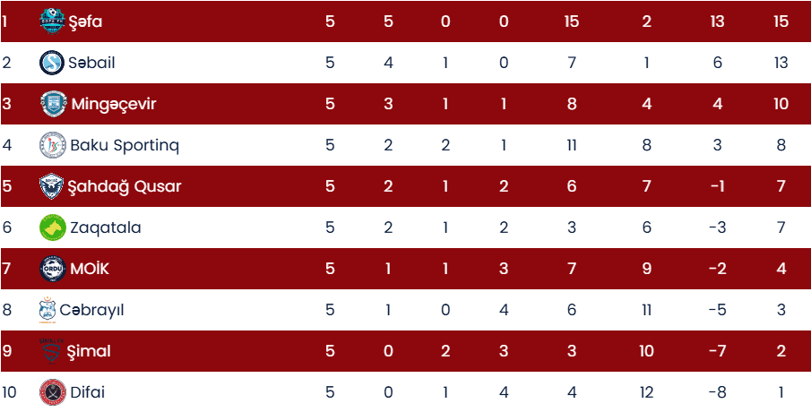 Bakıda “MOİK Binə” “Baku Sporting”i qəbul edərək, paytaxt derbisini yaşayacaq. Şamaxıdaysa “Şimal” “Difai” ilə qarşılaşaraq, bölgə təmsilçiləri arasında gərgin duel təşkil edəcək. Hər iki oyun saat 14:00-da başlayacaq. “MOİK Binə” son turda “Şəfa”ya 1:0 hesabı ilə qalib gələrək, 10 xalla 2-ci yerdədir, “Baku Sporting” isə 7 xalla 5-ci yerdədir. “Şimal” evində son 4 matçda yenilməmişdir, “Difai” isə son 2 oyununda 5 qol vurub hücum gücünü nümayiş etdirmişdir. Turun qalan 3 matçı (“Cəbrayıl” – “Şahdağ Qusar”, “Şəfa” – “Səbail”, “Zaqatala” – “Mingəçevir”) sabah keçiriləcək.
