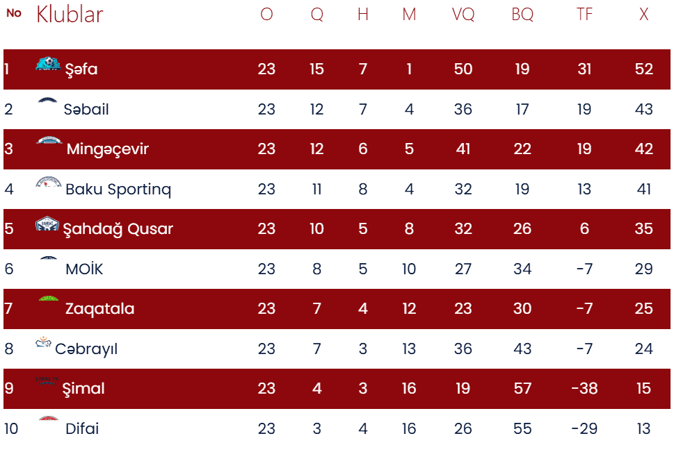 Qeyd edək ki, ötən gün keçirilən görüşlərdə də maraqlı nəticələr qeydə alınıb. “Şəfa” MOİK üzərində inamlı qələbə qazanıb (3:0), “Şahdağ Qusar” səfərdə “Zaqatala”nı minimal hesabla məğlub edib (1:0), “Cəbrayıl” isə “Mingəçevir” üzərində gözlənilməz qələbəyə sevinib (2:1).