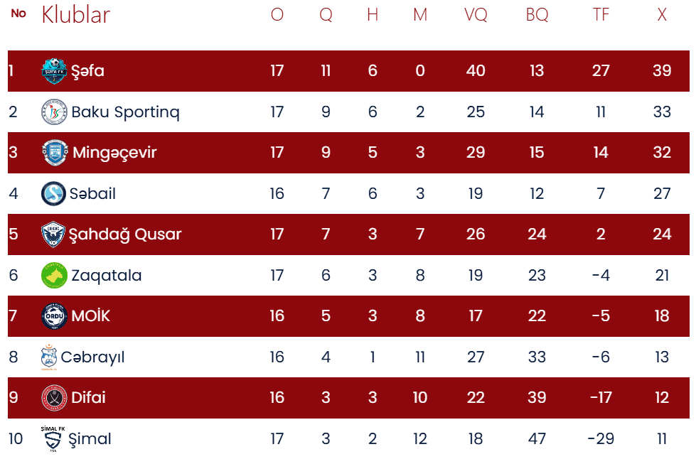 Xatırladaq ki, turun əvvəlki oyunlarında “Şəfa” “Şahdağ Qusar”ı 2:1 hesabı ilə məğlub edib. “Mingəçevir” “Baku Sportinq” üzərində 1:0 hesablı qələbə qazanıb, “Şimal” isə “Zaqatala”nı 4:3 hesabı ilə üstələyib.