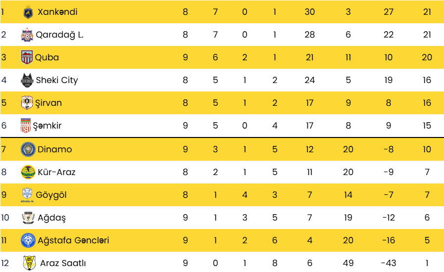 Xatırladaq ki, turda dünən keçirilmiş oyunlarda “Şəmkir” öz meydanında “Ağdaş”ı 4:1, “Dinamo” səfərdə “Ağstafa Gəncləri”ni 1:0, “Quba” isə “Araz Saatlı”yı 4:2 hesabı ilə məğlub edib.