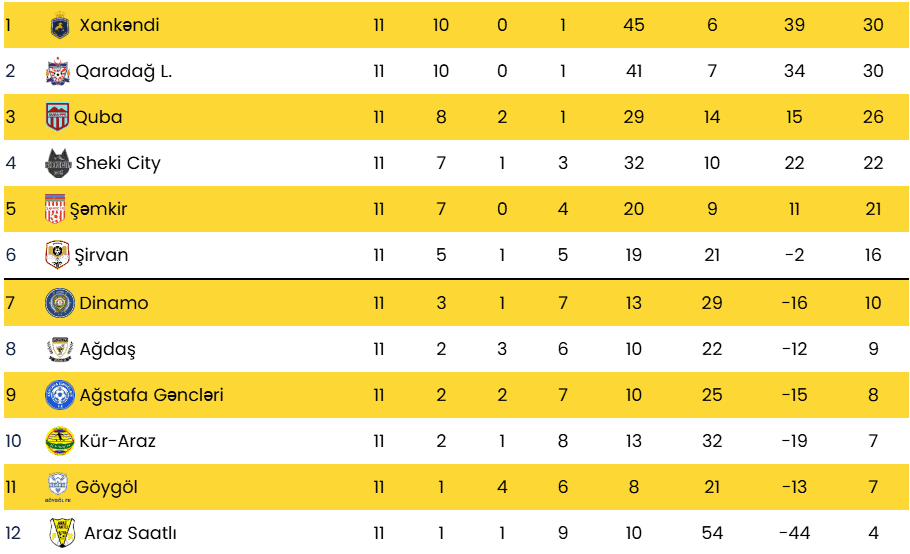 Eyni zamanda, “Şəmkir” öz meydanında “Kür-Araz”a minimal fərqlə qalib gələrək vacib 3 xal qazandı. “Ağdaş” isə “Göygöl” qarşısında inamlı oynayıb 2:0 hesabı ilə səfərdən qələbə ilə qayıtdı. Nəzərinizə çatdıraq ki, ötən gün keçirilən oyunlarda hamısı 4:1 nəticəsi ilə başa çatmışdı: “Qaradağ Lökbatan” “Dinamo”yu, “Quba” “Şəki Siti”ni, “Ağstafa Gəncləri” isə “Araz Saatlı”nı rahatlıqla üstələmişdi.