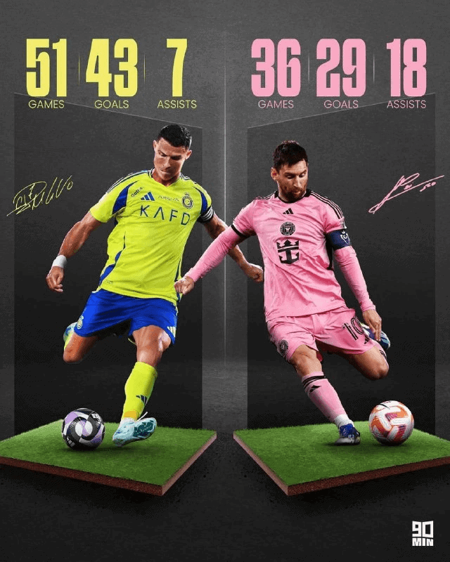 2024-cü ildə Lionel Messi və Cristiano Ronaldo-nun oynadığı oyunların statistikası açıqlanıb.