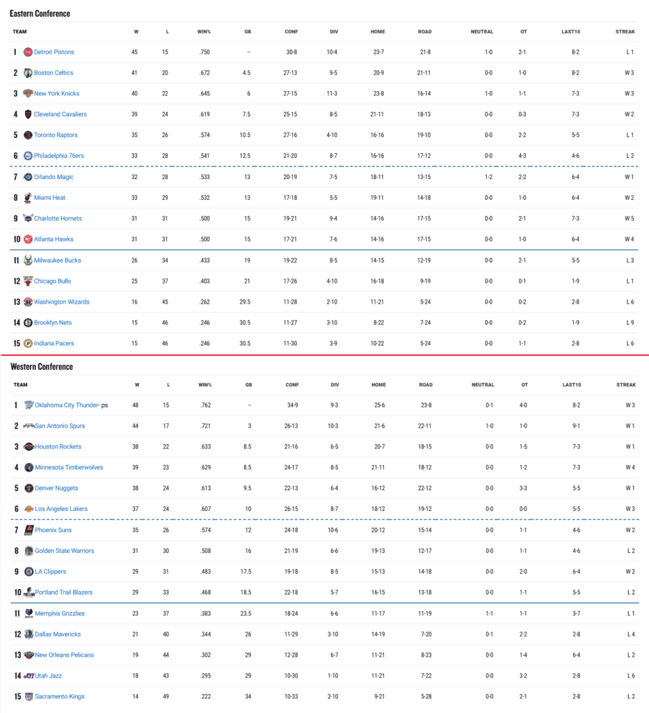 - Chicago: Yabusele (18 + 12 ribaund), Jones (15), Giddey (14 + 9 ribaund + 9 ötürmə), Buzelis (11), Okoro (4) – start; Sexton (20), Richards (12 + 13 ribaund), Miller (8), Dillingham (6), Olbrich (0).