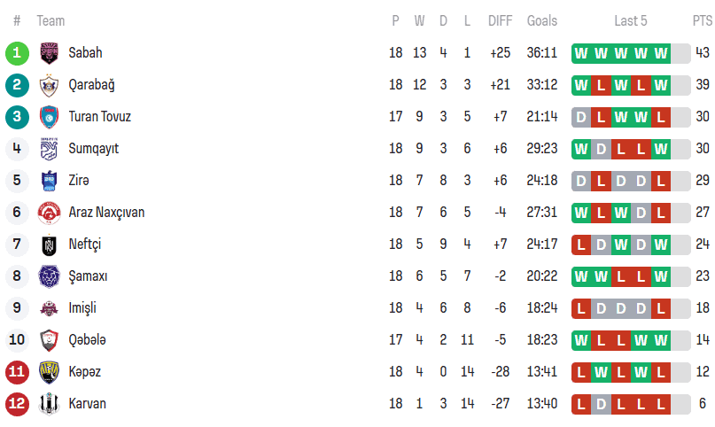 Peşəkar Futbol Liqasının rəsmi məlumatına görə, bayquşlar son 7 matçda heç bir xal itirməyərək, 43 xalla cədvəlin zirvəsində qalır və qış şampionu statusunu möhkəmləndirib.