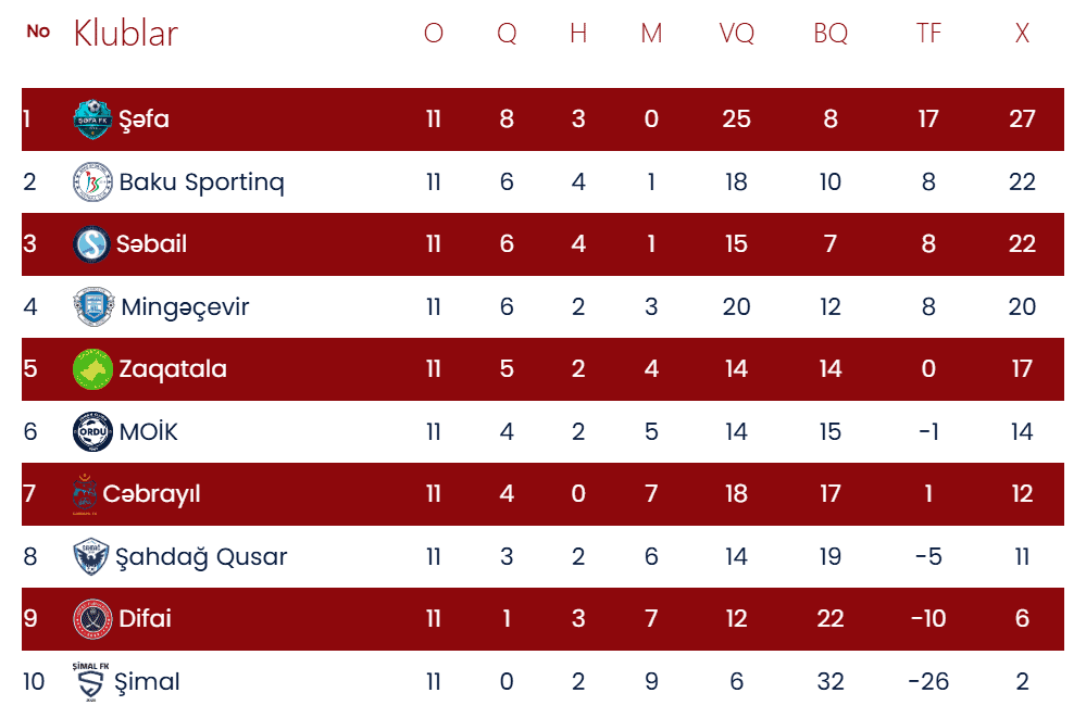 Azərbaycan I Liqasının 11-ci turu tamamlanıb və Şamaxı Olimpiya İdman Kompleksində keçən bağlanış matçında lider Şəfa Cəbrayılı minimal hesabla məğlub edərək başcılıq mövqeyini möhkəmləndirib. Ötən tur xal itirmiş paytaxt komandası prinsipial rəqabətdə Vüqar Həsənovun 38-ci dəqiqədə qolu sayəsində 1:0 qələbə qazanıb. Turun digər matçlarında Baku Sportinq Şimalı 1:0, MOİK Zaqatalanı 3:1 keçib, Difai-Mingəçevir 1:1, Şahdağ Qusar-Səbail 2:2 bərabərliklə bitib.