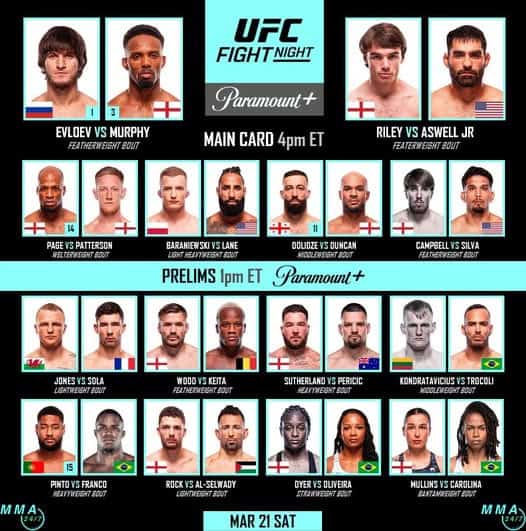 UFC martın 21-də Londona qayıdır. “The O2” arenasında keçiriləcək Fight Night turnirinin əsas döyüşündə yarımyüngül çəkidə məğlubiyyətsiz döyüşçülər – Leron Mörfi və Movsar Yevloyev üz-üzə gələcək. Bu qarşılaşma titul uğrunda mübarizə baxımından həlledici hesab olunur və qalibin növbəti titul şansı qazanacağı gözlənilir.